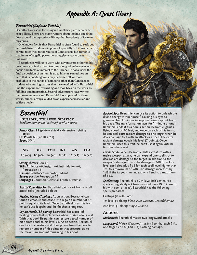 - New NPCs with art, stats, and a lore to drop into your campaign,